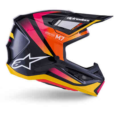 Casco Moto Cross Enduro Alpinestars SM7 Rise Ece06 nero giallo rosa lucido