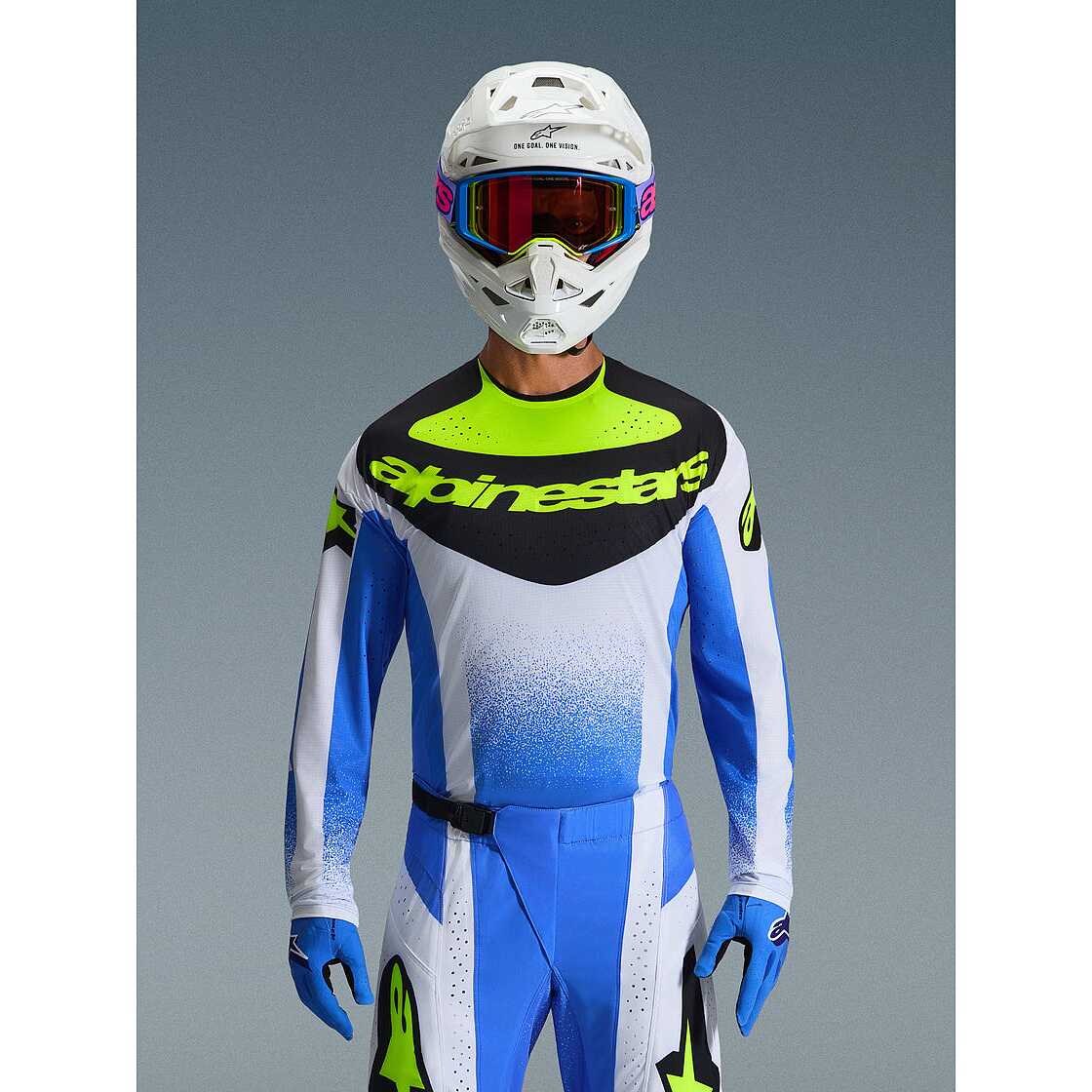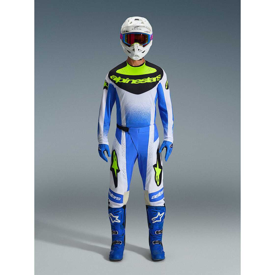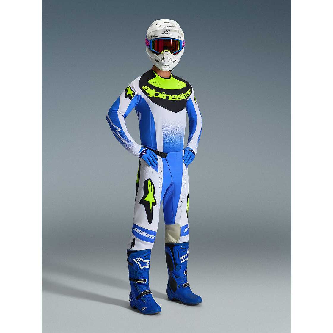 Alpinestars TECHSTAR KNIF Cross Enduro Motorradtrikot Hellblau Schwarz Fluoreszierend Gelb