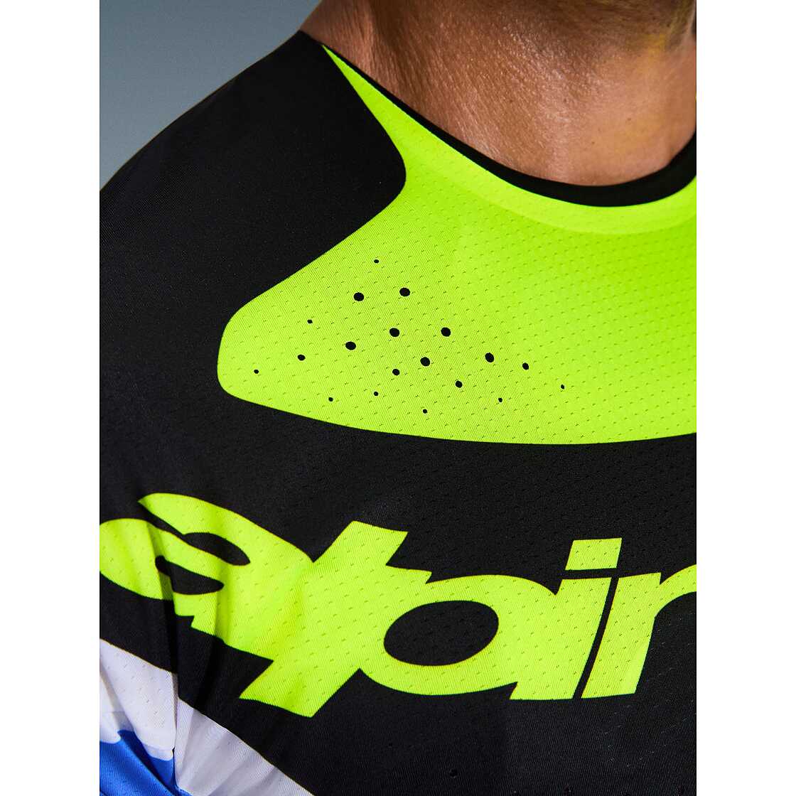 - Das Trikot verfügt über lasergeschnittene Perforationen auf der Brust und den Armen für zusätzliche Belüftung.