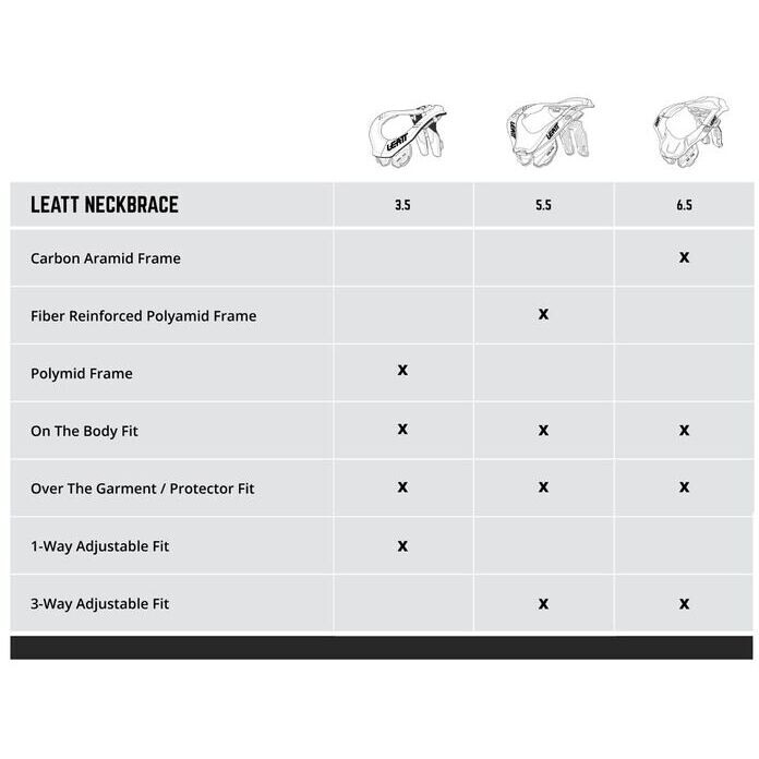 Die starre, unflexible Struktur des 5.5 besteht aus verstärktem Polyamid und bietet eine optimale Kombination aus Schutz und Komfort. Einstellbar für die meisten Fahrer und so konzipiert, dass Helm und Nackenstütze nicht in die Hände der empfindlicheren Schlüsselbeine geraten. Der Rahmen bleibt bei einem möglichen Aufprall starr und trägt zudem dazu bei, das Risiko schwerer Nackenverletzungen zu verringern.