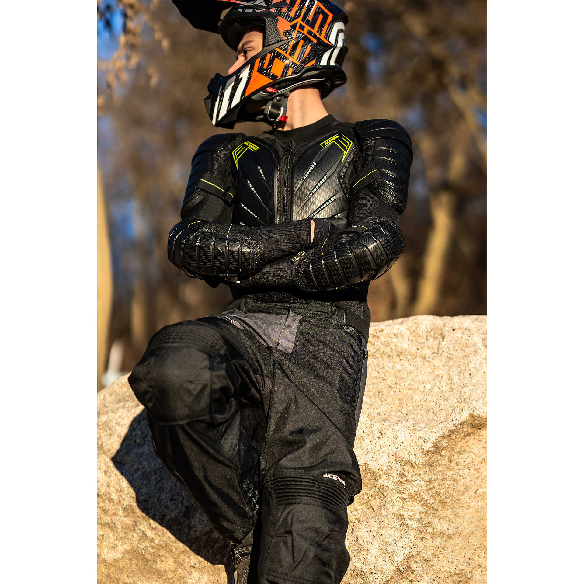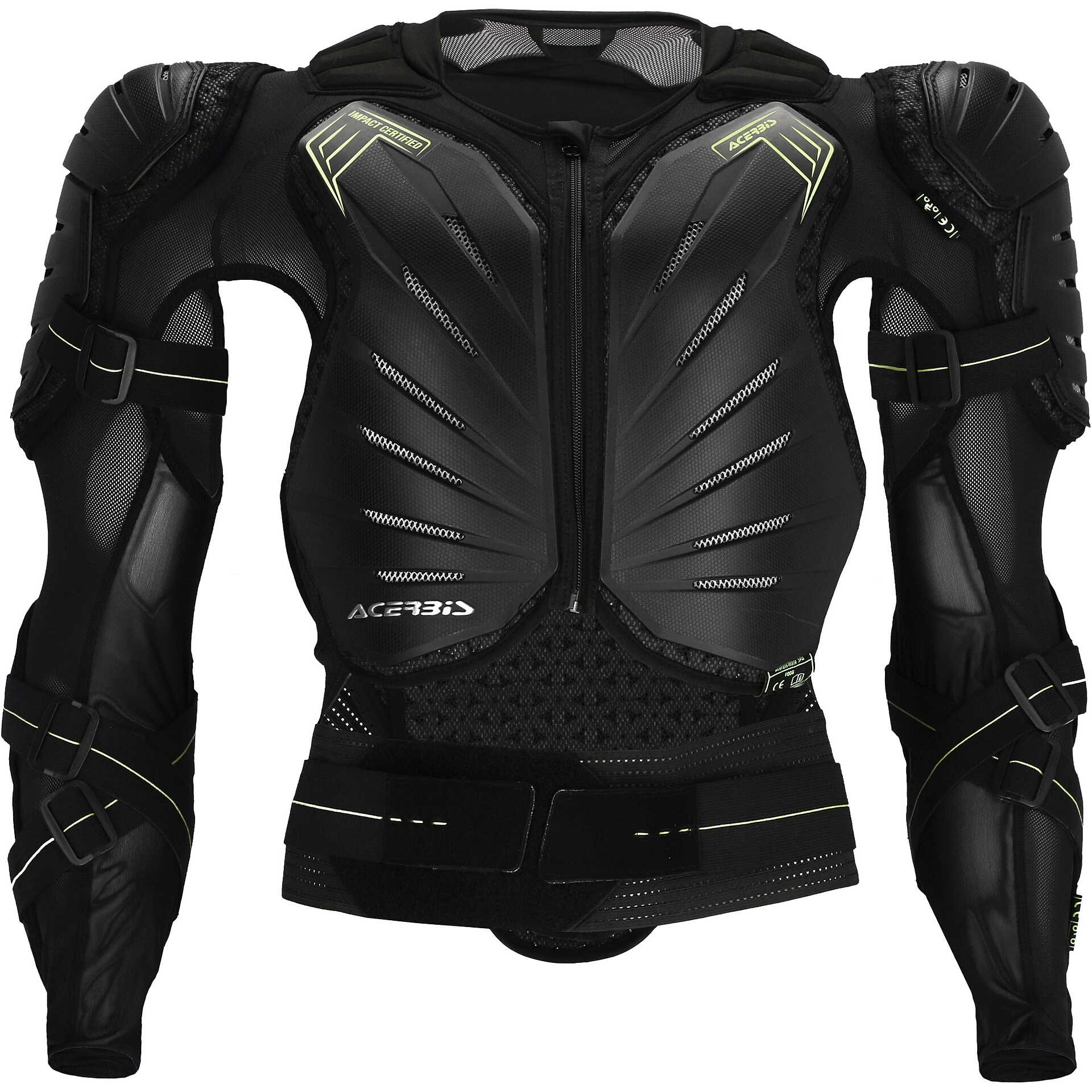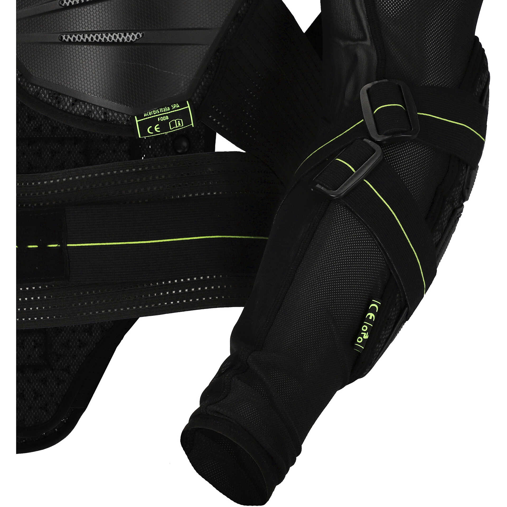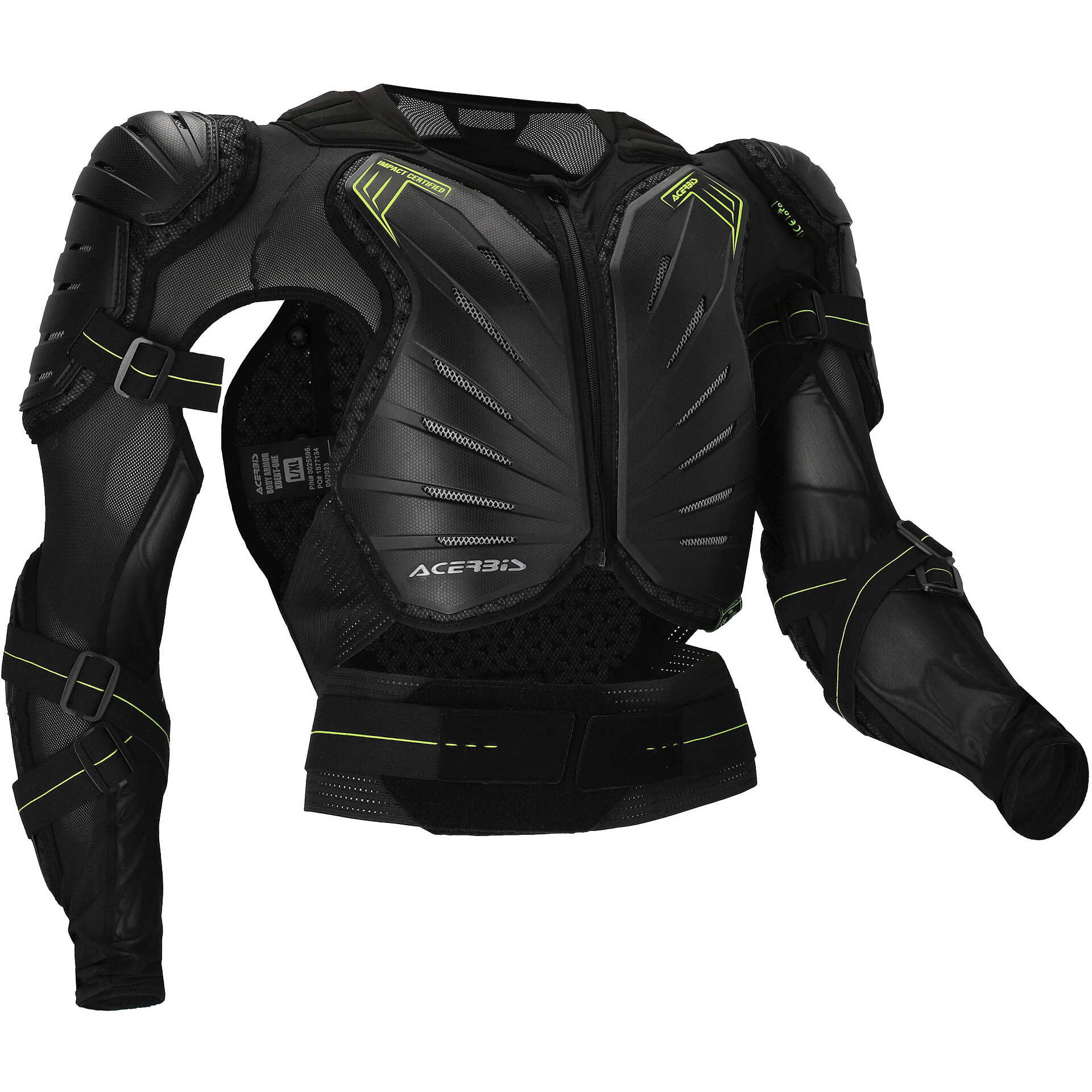 - Insert with Acerbis logo on front and back plastics. Looped homologation labels under plastic on chest, back, left shoulder and left elbow.