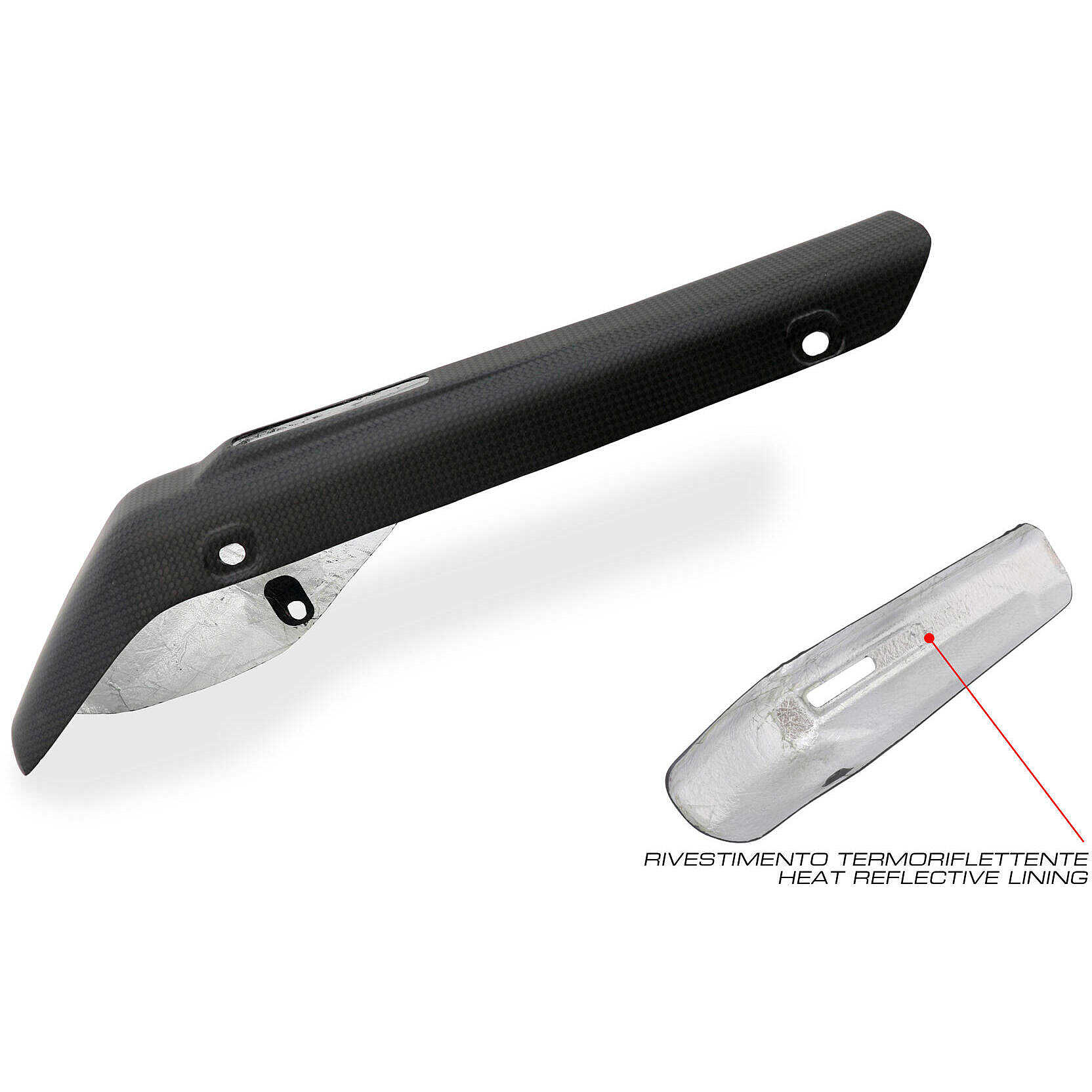 - Akrapovic Slip-on silencer heat shield (code 96481773DA) for the Multistrada V4 made of carbon fiber with plain weave. Inside there is a heat-reflecting coating.