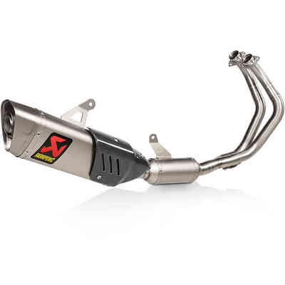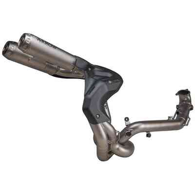 This is a complete stainless steel exhaust system with a beautifully finished carbon fiber outer muffler sleeve and a high quality titanium end cap. With the Racing Line, power and torque levels were increased by a further 8.2 Kw (11.1 HP) and 13.4 Nm, recorded at Akrapovič's in-house dyno with back-to-back testing by Kawasaki with Racing Line exhaust (Titanium) and a Ninja ZX-10RR with a stock exhaust system. Coupled with linear delivery across the entire rev range, it comes with a hexagonal muffler - including titanium internal parts to reduce weight - and a deep, sporty sound. There is also an option to add an aluminum muffler bracket to complete the beautiful finish of this system. The motorcycle ECU must be remapped when the Racing Line system is installed.