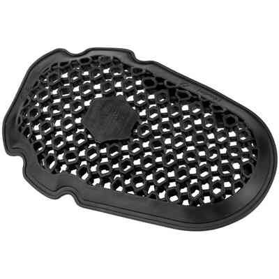 - Rigid perforated mesh made from recycled polyester fibres that ensures better ventilation on hot days.