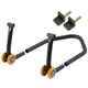 The quality and reliability of LighTech trestles is known all over the world now. After a decade of continuous development and improvement on the race, the hardest test bench for these components, we are able to offer products that are second to none. Absolutely full range of front stands, rear, central and specific to use in sports and professional environment. Besides all this, LighTech has also designed and produced a new line of removable rear stand, very comfortable in case of transport and optimization of space in your warehouse or negozio.LighTech offers different models of rear stand, based on years of collaboration and 'intensive development alongside the most important MotoGP and Superbike team.
