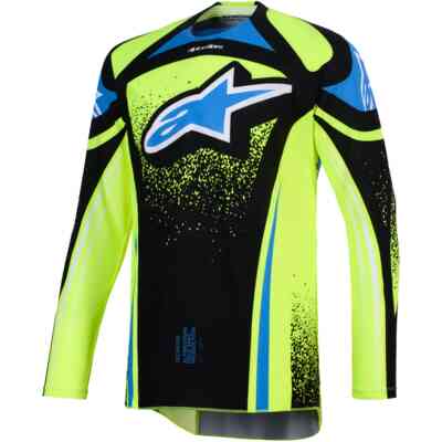 Maillot moto cross enduro Alpinestars TECHSTAR KNIF bleu clair noir jaune fluo