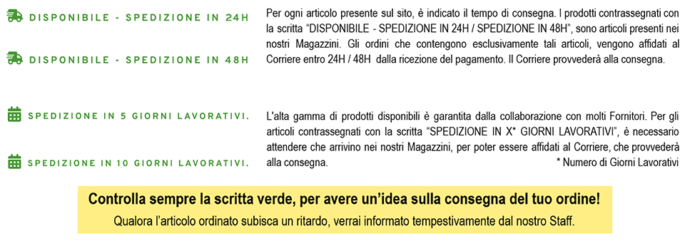 Ci impegnamo ogni giorno ad evadere gli ordini il più velocemente possibile avvisando tempestivamente il cliente, qualora si dovessero presentare dei ritardi.